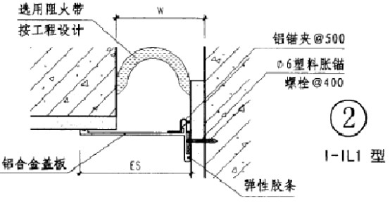 金屬蓋板型內墻變形縫——采用滑桿確保變形縫裝置變位時仍能保持中心及原有位置。